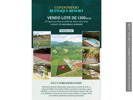 Disfruta de piscinas, sauna, turco, cancha de tenis, cancha de fútbol 5 sintética, gimnasio al aire libre, juegos infantiles, y una zona de eventos que te hará querer celebrar todo. Esta parcela es el complemento ideal para una vida familiar.
